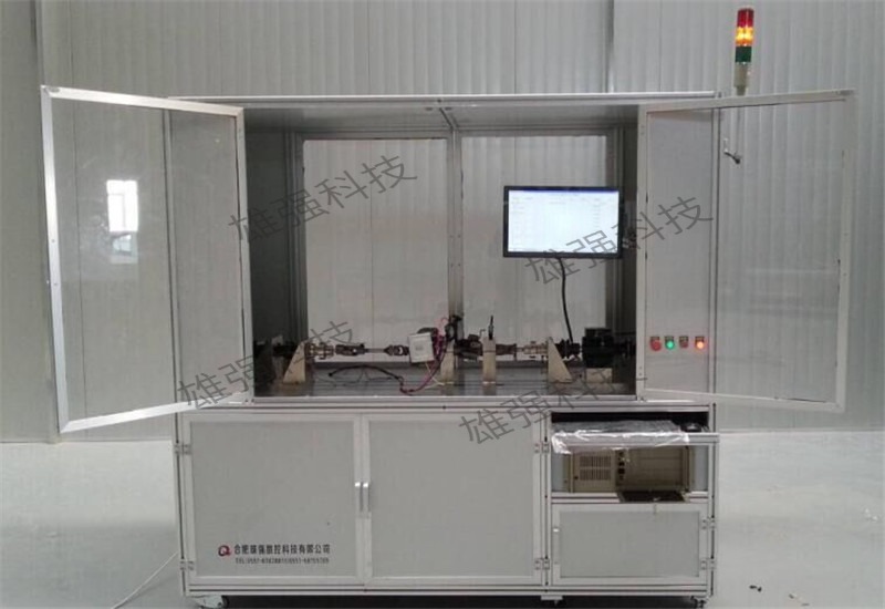 該試驗(yàn)臺(tái)主要實(shí)現(xiàn)轉(zhuǎn)向管柱的轉(zhuǎn)向間隙、啟動(dòng)力矩、空載扭矩試驗(yàn),是測(cè)試汽車轉(zhuǎn)向管柱轉(zhuǎn)向間隙的專用測(cè)試設(shè)備,可對(duì)轉(zhuǎn)向管柱總成的間隙進(jìn)行定量測(cè)試分析。試驗(yàn)過(guò)程中,計(jì)算機(jī)繪制相應(yīng)的角度-扭矩性能曲線,測(cè)量啟動(dòng)力矩和空載扭矩,并對(duì)檢測(cè)結(jié)果進(jìn)行產(chǎn)品合格與否判斷