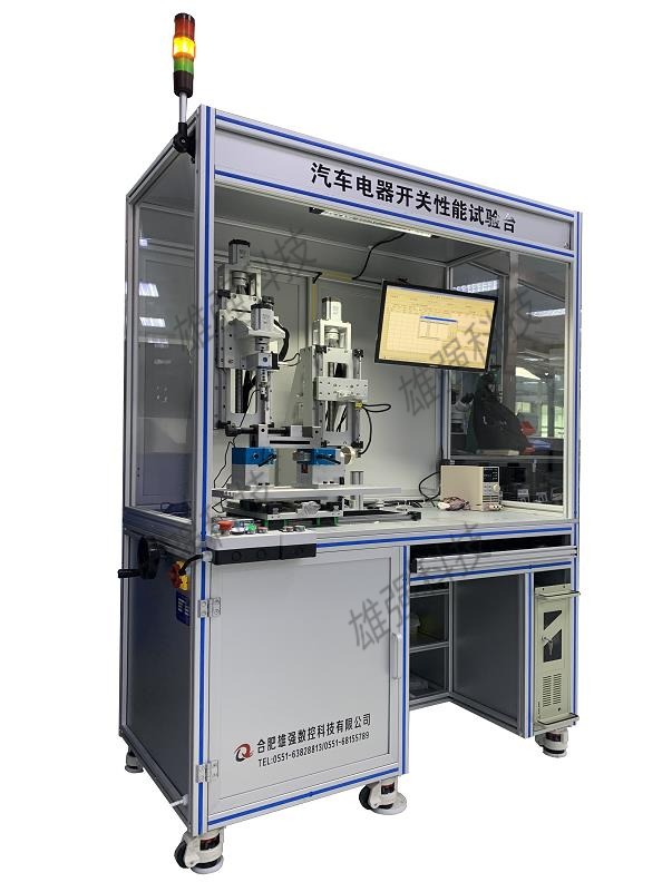 該性能臺采用計算機與試驗臺一體化結(jié)構(gòu),可對組合開關(guān)推拉力、旋轉(zhuǎn)開關(guān)旋轉(zhuǎn)扭矩、按壓開關(guān)按壓力進行檢測,(當樣件帶負載時測的其相對應(yīng)的觸點導通與斷開壓降位置曲線)并繪制相應(yīng)的性能曲線圖。在試驗中采用計算機控制,自動記錄檢測數(shù)據(jù)、出具數(shù)據(jù)檢測報告。